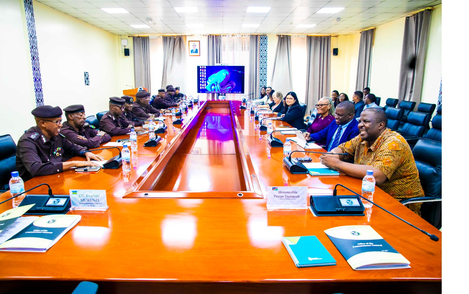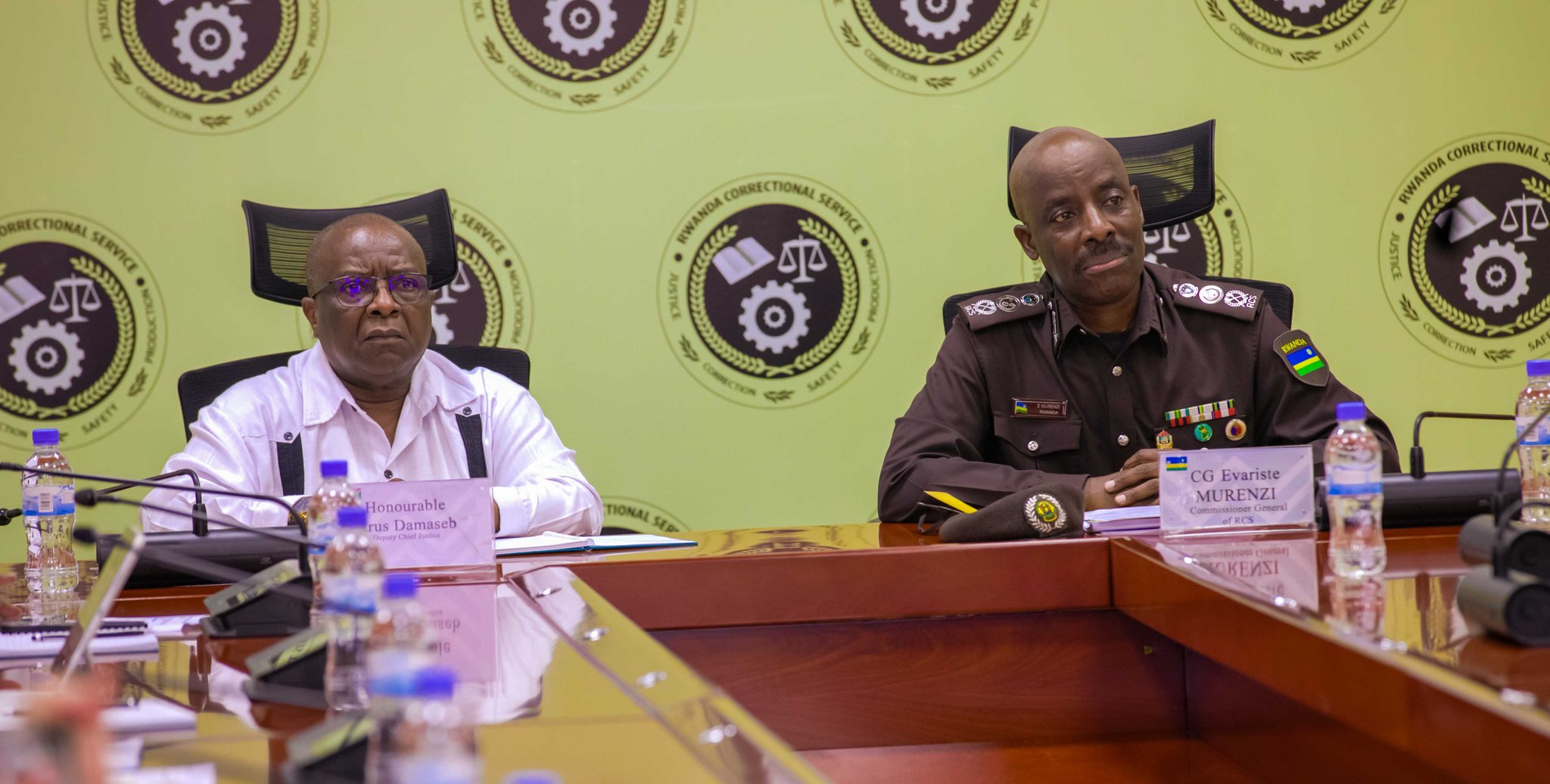 Komiseri Mukuru w’Urwego rw’u Rwanda rushinzwe Igorora (RCS), CG Evariste Murenzi, yakiriye ku cyicaro gikuru cya RCS itsinda ryaturutse muri Repubulika ya Namibia ryari riyobowe na Hon. Petrus Damaseb, Umuyobozi wungirije w’Urukiko rw’Ikirenga muri icyo gihugu.